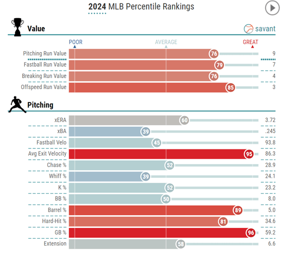 Fried posts a 96th percentile groundball rate and 89th percentile barrel rate without a blistering fastball either(45th percentile).